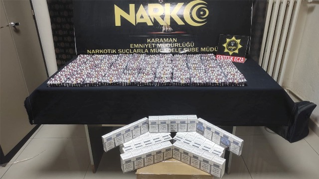 Şüphelilerin evlerinde yapılan aramada ise 4 bin 823 adet sentetik ecza ile 140 bandrolsüz sigara ele geçirildi.