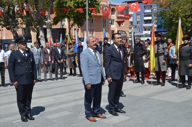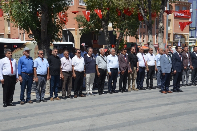Karaman Belediye Başkanı Savaş Kalaycı ve Uluslararası Türk Kültürü Teşkilatı (TÜRKSOY) Genel Sekreter Yardımcısı Sayif Yusuf, Cumhuriyet Parkı'nda düzenlenen törende, Atatürk Anıtı'na çelenk bıraktı.