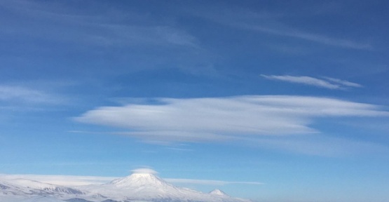 Türkiye’nin ve Avrupa’nın en büyük dağı olan ve her mevsim tepesinde karın eksik olmadığı 5137 metre yüksekliğindeki Ağrı Dağının zirvesinde oluşan bulut tabakası, şapkayı andıran görüntüsüyle güzel bir manzara oluşturdu. Doğubayazıt’tan rahatça görülebilen bu görüntü, vatandaşlarca bol bol fotoğraflandırıldı. AĞRI