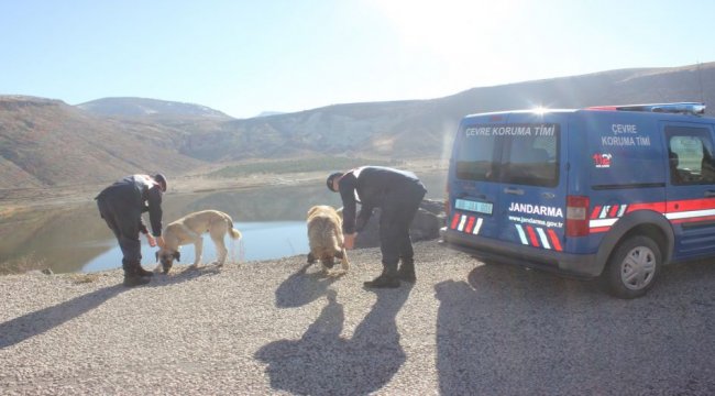 AKSARAY (İGFA) - Aksaray İl Jandarma Komutanlığı Çevre, Doğa ve Hayvanları Koruma Timi tarafından zorlu kış şartlarında yiyecek bulamayan dostların korunması ve beslenmesi amacıyla; Doğa Koruma ve Milli Parklar Müdürlüğü desteğiyle Gülağaç ilçesi Balıklıgöl ve Narlıgöl mevkilerine buğday yemi ve köpek maması bıraktı.Ekipler, soğuk hava şartlarında can dostların korunması ve beslenmesi için çalışmalarına devam edecek.