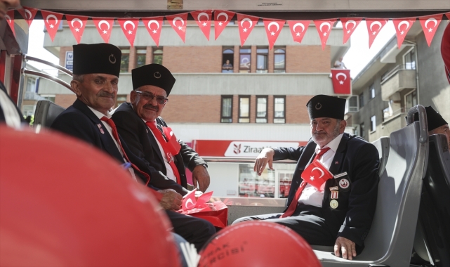 Kıbrıs Barış Harekatı ve terörle mücadele gazileri, Büyük Taarruz'un 100'üncü yıl dönümünü çocuklarla coşku içerisinde kutladı.Gaziler ve çocuklar, Keçiören'deki bir dönerci tarafından düzenlenen 30 Ağustos Zafer Bayramı etkinliği kapsamında bando takımının çaldığı marşlar eşliğinde otobüsle caddeleri gezdi.Cadde üzerindeki vatandaşlar, bayram coşkusuna eşlik etti.Gaziler ve çocuklar, otobüs turunun ardından Keçiören ilçesi Aşağı Eğlence Mahallesindeki dönerci dükkanına geldi. Ay yıldızlı tişörtler giyen minikler, Kıbrıs ve terörle mücadele gazilerine döner ikram etti.- Kıbrıs ve terörle mücadele gazileri katıldıEtkinliğe katılan Kıbrıs Barış Harekatı gazisi 70 yaşındaki Sıddık Büyükturan, AA muhabirine yaptığı açıklamada, Gazi Mustafa Kemal Atatürk'ün sayesinde vatanın kurtulduğunu ve gazi olmaktan mutluluk duyduğunu belirtti.Bu vatanın, geleceğin büyükleri olacak çocuklara emanet edileceğini ifade eden Büyükturan, "Etkinliği yapanlardan Allah razı olsun. Bizleri andıkları, tanıdıkları için çok teşekkür ediyoruz. İnşallah bütün nesil bizi böyle tanır." diye konuştu.