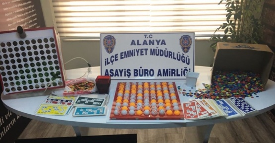 Antalya’nın Alanya ilçesinde polis ekipleri, para karşılığı tombala oynatıldığı ihbarı üzerine 2 ayrı adrese eş zamanlı baskın düzenledi.Edinilen bilgiye göre, Alanya İlçe Emniyet Müdürlüğü Asayiş Büro Amirliği ekipleri, 17 Şubat’ta Sugözü Mahallesi Zamanoğlu Caddesi üzerindeki 3 katlı bir binanın çatı katındaki kumarhaneye çevrilen ve kapatıldıktan sonra mührün kırıldığı adreste ve Şekerhane Mahallesi’nde bulunan bir dernekte para karşılığı tombala oynatıldığı bilgisine ulaştı. Bunun üzerine dün akşam saatlerinde harekete geçen ekipler, 2 ayrı adrese eş zamanlı baskın düzenledi.Baskınlarda para karşılığı tombala oynattığı iddia edilen Erkan O. ve Ahmet A. gözaltına alınırken, tombala oynayan 66 kişiye Kabahatler Kanunu’na muhalefetten toplam 14 bin 982 TL para cezası kesildi. Polisin iş yerlerindeki yaptığı incelemede tombala oynamaya yarayan üzerinde rakam yazan 90 adet pinpon topu, 226 adet çeşitli renklerde tombala kartı, çok sayıda tombala pulları ve elektronik tombala makinesi ele geçirildi.Erkan O. ve Ahmet A., emniyetteki sorgusunun ardından serbest bırakıldı.