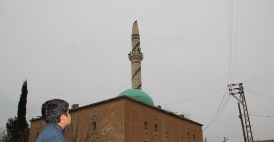 Deprem sonrası cami minaresi zarar gördü