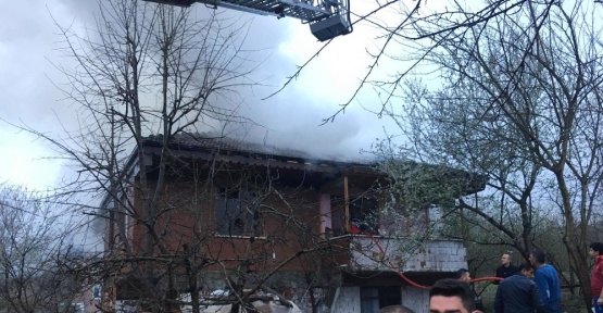 Evin çatısı alev alev yandı