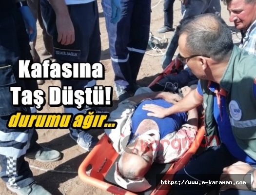 Olay, Merkeze bağlı Bucakkışla Köyü yolu üzerindeki Avgan Çimeni mevkiinde meydana geldi.İddiaya göre, Mehmet Y, 10 metre derinliğindeki kuyu içerisinde çalışma yaptığı sırada kafasına taş düştü. Görgü tanıklarının haber vermesi üzerine kuyu içerisinde yere yığılan adamı kurtarmak üzere Karaman Belediyesi İtfaiye ekipleri ile AFAD ekipleri sevk edildi.Ağır yaralı olarak kuyudan çıkartılan Mehmet Y, olay yerinde sağlık ekiplerince yapılan müdahalenin ardından Karaman Devlet Hastanesi'ne kaldırıldı. Sağlık durumunun ağır olduğu öğrenilirken, olayla ilgili soruşturma başlatıldı.Yazar:Ahmet BOYACI