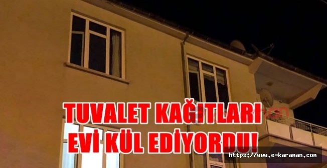 Karaman'da bir evden yükselen dumanlar mahalleyi panikletti.Edinilen bilgiye göre, Mehmet Akif Ersoy Mahallesi Şehit Hamza Çetin Caddesi üzerindeki 3 katlı evin 3. katından dumanlar yükseldi.Çevreye yayılan dumanla birlikte panikleyen ikamet sakinlerinin sesini işiten komşuları itfaiyeye haber verdi. Olay yerine sevk edilen polis ve Karaman Belediyesi itfaiye ekipleri duman olmasına karşın yangınla karşılaşmayınca bir süre inceleme yaptı.İnceleme sonucu ikametin tuvaletindeki elektrik hattından kaynaklı tuvalet kağıtlarının tutuştuğu tespit edildi. Küçük çaplı yangın ikamet sakinlerince söndülürken, dairenin elektirik akımı tedbir amaçlı kesildi.Yazar:Ahmet BOYACI