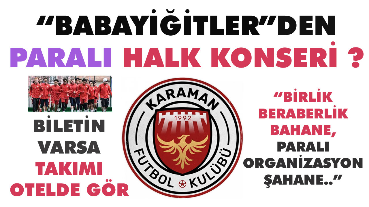 Karaman Beldiyesinden takımı devralarak Karaman’da bir kısım medya tarafından aylarca “Babayiğitler” olarak sürekli lanse edilen kulüp yöneticilerinin takımı halkla kaynaştırmak ve tanıtmak için yerel bir organizasyonla takıma destek amaçlı paralı sunulan proje konserinin halkla paralı anılması vatandaşın da tepkisini çekti.