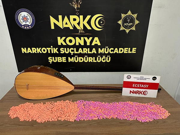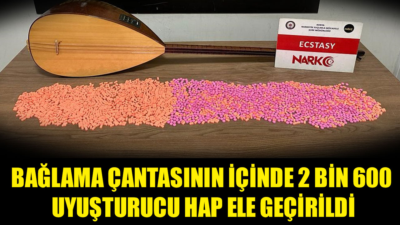 Konya'da yol uygulamasında durdurulan bir araçta bağlama çantasına saklanmış 2 bin 600 uyuşturucu hap bulundu.