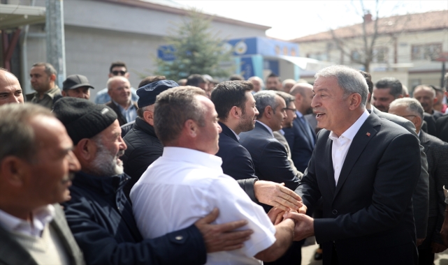 Akar, esnaf ziyaretlerinin ardından ilçe merkezlerinde vatandaşlarla bir araya geldi. Konuşmasında, Cumhurbaşkanı Recep Tayyip Erdoğan'ın liderliğinde güçlü ve büyük Türkiye olma yolunda kararlılıkla ilerlediklerini ifade eden Akar, ülkenin büyümesi ve güçlenmesindeki en önemli unsurların başında güvenliğin geldiğini belirtti.85 milyonun rahat ve huzur içinde yaşaması için güvenliğe vurgu yapan Akar, "Asil milletimizi 40 yıldan beri başına musallat olan terör belasından kurtarmak için yapılması gereken ne varsa bunları yapıyoruz. Yurt içi tamam. Teröristler Suriye'nin kuzeyinde kazdıkları çukurlara gömüldüler, şu anda da Irak'ın kuzeyinde terörist kampları yerle bir ediliyor, barınakları, sığınakları, inleri tepelerine yıkılmaya devam ediliyor." diye konuştu.Teröristlerin arkasında kim olursa olsun, kim desteklerse desteklesin mücadelenin kararlılıkla devam edeceğini dile getiren Akar, "Mehmetçik büyük bir kahramanlıkla teröristlerin üzerine gidiyor. Terör örgütünün şu anda çöküş halinde olduğu görüyoruz. Bunu engellemek için, terör örgütüne nefes aldırmak için içeriden ve dışarıdan çalışanlar var. Bunların beyhude gayretler olacağını, bunların terörün çöküşünü engelleyemeyeceğini hepinizin bilmesi lazım." diye konuştu. Mehmetçiğin nefesinin teröristlerin ensesinde olduğunu belirten Akar, "Bazı içeriden ve dışarıdan hainler, nifak tohumları atarak 'Terör elebaşını tahliye edeceğiz', 'Bunları affedeceğiz' gibi birtakım ifadeler kullanıyor. Bunlara asla müsaade etmeyeceğiz." diyen Akar, Türkiye'nin önemli bir seçime yaklaştığını ifade etti. Akar, şunları söyledi:"Bu seçimde zihniyetler önemli. Bizim bu kadar şehit, gazi verdiğimiz, yıllarca mücadele ettiğimiz terör örgütüne can suyu vereceklerle mesafe koymak gerekir. Terörle, terör sevicilerle, terörü destekleyenlerle arasına mesafe koymayanlardan biz uzağız. Terörle arasına mesafe koymayanlar bizim için problem. Bu konuda halkın, sizin ferasetinizin, milli manevi değerlere olan saygınızdan eminiz, bundan şüphemiz yok."