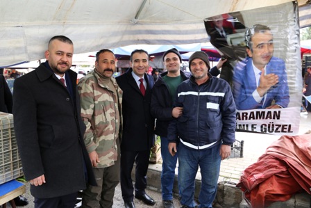 Karaman Belediye Başkanı Savaş Kalaycı, 31 Mart 2024 Mahalli İdareler Seçimleri için gerçekleştirdiği seçim çalışmaları kapsamında Pazartesi Pazarı'nı ziyaret etti.
