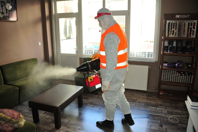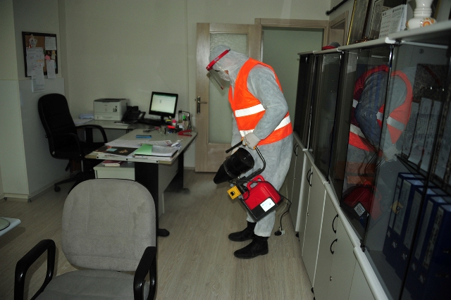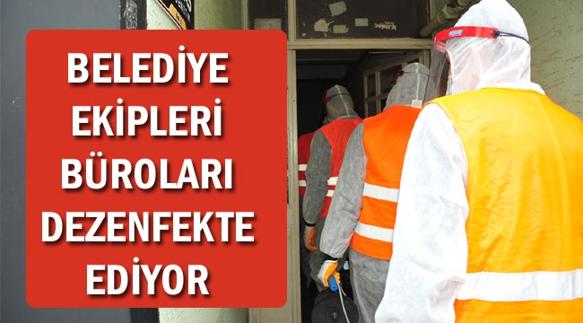BELEDİYE EKİPLERİ BÜROLARI DEZENFEKTE EDİYOR