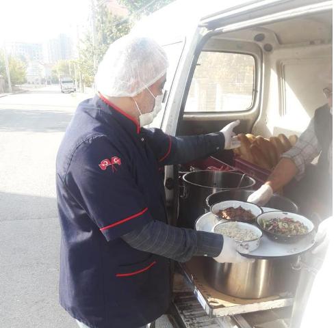 Karaman Belediye Başkanı Savaş Kalaycı’nın talimatları doğrultusunda, belediye yemekhanesinde hijyenik bir ortamda hazırlanan en az üç çeşit yemek, il genelinde belirlenen yaklaşık 300 haneye dağıtılıyor. Ekipler, iki öğün şeklinde hazırlanan sıcak yemekleri her gün kapı kapı gezerek sosyal mesafe kuralları çerçevesinde ihtiyaç sahibi ailelere ulaştırıyor.