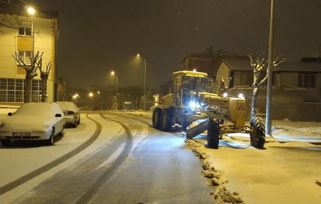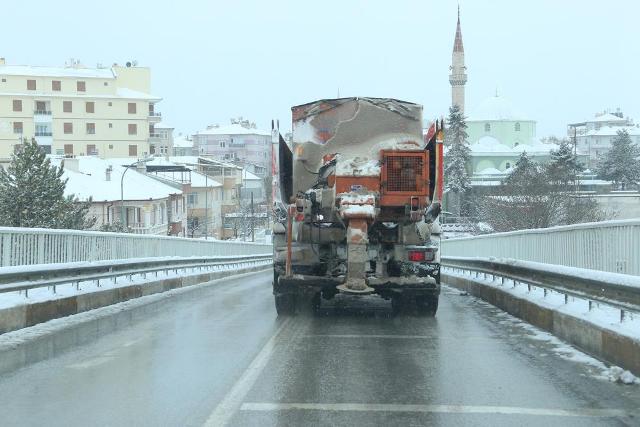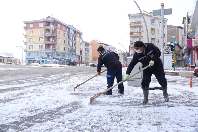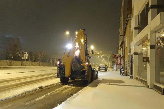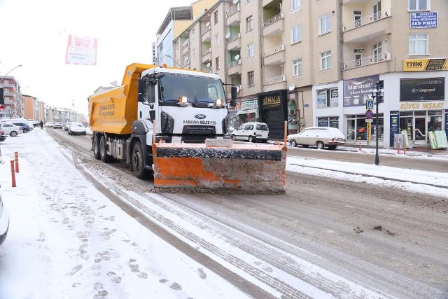 Karaman Belediyesi karla mücadele ekipleri, dün geceden itibaren etkisini gösteren kar yağışı ile birlikte; ana arterler, bağlantı yolları, eğitim ve sağlık kuruluşları başta olmak üzere cadde ve yürüyüş yollarının açık kalması için mesai mefhumu gözetmeden çalışmalarını sürdürdü. Araçların yoğun olarak kullandığı güzergâhlar ve yayaların rahat yürümesi için kaldırımlar kısa sürede temizlendi.