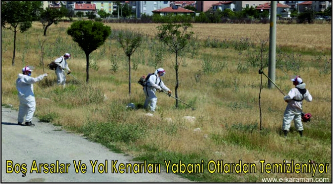 Karaman Belediyesi’ne bağlı ekipler, şehrin dört bir tarafında yabani ot temizliği yapıyor. Kaldırım, orta refüj, boş arsalar, yol kenarları ve mahalle aralarındaki yeşil alanlarda büyüyerek görüntü kirliliği oluşturan yabani otlar, çapa ve tırpan makineleriyle temizleniyor.