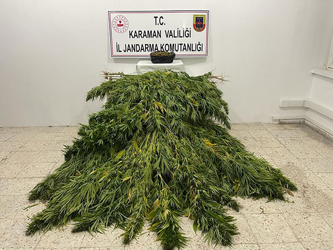 Karaman Valiliğinden yapılan açıklamaya göre, İl Jandarma Komutanlığı ekipleri, teknik ve fiziki takip sonucu Ayrancı ilçesinde bir mısır tarlasında Hint keneviri yetiştirildiğini tespit etti.