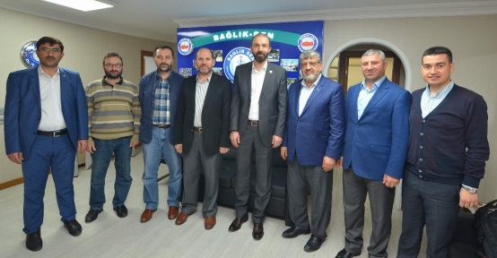 İHH Bursa Başkanı Hüseyin Kaptan ve Bursa Gönüllü Kuruluşlar Platformu Sözcüsü Burhan Sayılgan, Sağlık-Sen Bursa Şubesine iade-i ziyarette bulundu.Ziyarette ülke gündemi değerlendirilirken, Sağlık-;Sen Bursa Şubesi ve İHH Bursa Şubesi arasında yapılan Yetim Projesi de değerlendirildi.Ziyaretten duyduğu memnuniyeti dile getiren Şube Başkanı Gökhan Yünkül, “Ülkemiz zor bir dönemden geçmektedir. İçte ve dışta Türkiye’nin gelişimine engel olmak isteyen ve kullanışlı maşalar aracılığıyla siyasi ve sosyal sabotajlar yapmak isteyenlere karşı sivil toplum inisiyatifi olarak milletin yanında yer almaktayız. İHH, Bursa Gönüllü Kuruluşlar Teşekkülü ve Sağlık-Sen olarak aynı platformda sivil inisiyatif sergilemekten memnuniyet duymaktayız. Bizler ülkemizin yarınları için elimizden gelen her türlü işbirliği ve gayreti göstereceğiz. Bugün attığımız bu adımlar yarınlarımıza daha huzurlu ve müferrah bir Türkiye bırakmak içindir. Türkiye sadece kendisi için değil tüm İslam coğrafyası için örnek bir ülkedir. Ve nispette de sorumluluğu olan bir ülkedir. Bu sorumluluk bilinciyle hareket etmekteyiz. İHH Bursa Şubesi ile yaptığımız Yetim Projesi protokolü tabanımızda geniş bir yankı buldu. Bu bizleri memnun etti. Bundan sonraki süreçlerde de her türlü işbirliğine ve ortak projelere hazırız” dedi.Ziyarette görülerini ifade eden İHH Bursa Başkanı Hüseyin Kaptan, Sağlık-Sen’in değerler sendikacılığı yaptığına şahit olduklarını vurgulayan Kaptan ;”Sağlık-Sen ile aynı platformda ortak projelerde yer almak bizleri memnun etmektedir. Bugün birlikte hareket etme günüdür. Zor bir coğrafyadayız, bu zorluklara göğüs germek ve mazlumların yanında yer alabilmek için işbirliğine ve dayanışmaya her zamankinden daha fazla ihtiyacımız var. Temennimiz ve duamız İslam ümmetinin birlik şuuru içerisinde emperyalist ve sömürgeci zihniyetlere karşı geçmişine yakışan bir şekilde kıyama kalkmasıdır” şeklinde konuştu.