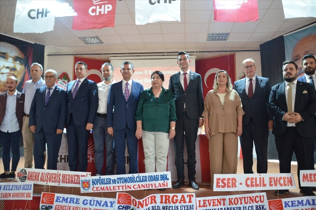 Özel, konuşmasının ardından, kongrede oy birliğiyle il başkanı seçilen Ahmet Recai Evcen'i tebrik ederek, hatıra fotoğrafı çektirdi.