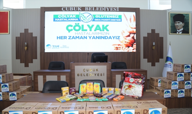 Ankara'nın Çubuk ilçesinde, glütensiz gıda tüketmek zorunda olan çölyak hastalarına belediye tarafından gıda paketi dağıtıldı.Çubuk Belediyesi Kültür ve Sosyal İşler Müdürlüğü ekiplerince glütensiz gıda ürünlerinin yer aldığı destek paketleri, ilçede tespit edilen 50 aileye dağıtıldı. Periyodik aralıklarla dağıtılacak paketlerde 22 ürün bulunuyor.Dağıtım töreninde konuşan Çubuk Belediye Başkanı Baki Demirbaş, sosyal belediyecilik anlayışının gereği olarak ilçelerinde 3 yıldır çölyak hastalarına destek verdiklerini söyledi.