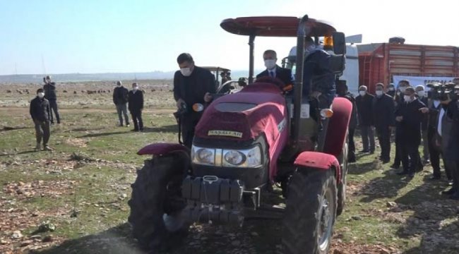 Program sonrası Başkan Tahmazoğlu, traktörle gübreleme çalışmalarına katıldı.