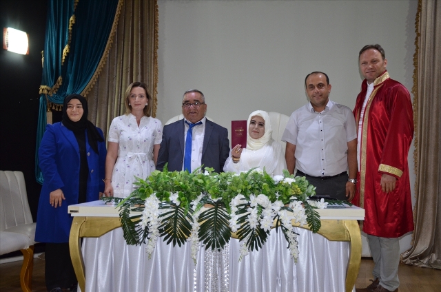 Çiftin nikah şahitleri, Karaman Valisi Hüseyin Engin Sarıibrahim'in eşi Hatice Sarıibrahim, AK Parti İl Kadın Kolları Başkanı Fatma Coştu ve Huzurevi Müdürü Hasan Hüseyin Tuna oldu.