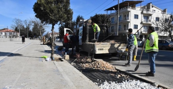 Aziziye Mahallesinde yapımı tamamlanan bisiklet yolunun çevre düzenlemesi çalışmaları da bitiriliyor. Düzce’de ilk kez uygulanan “Kurak Peyzaj” ile 300 metrelik bir alanda görsel tasarım yapıldı.