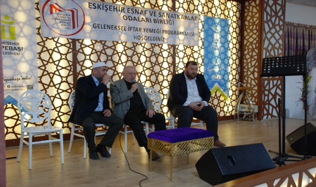 Eskişehir Esnaf ve Sanatkarları Odaları Birliğince düzenlenen iftar programında üyeler bir araya geldi.Birliğin Yönetim Kurulu Başkanı Ekrem Birsen, kentteki bir davet salonunda Mevlid-i Şerif okunmasıyla başlayan programda yemeğin ardından yaptığı konuşmada, katılımcılara teşekkür etti.Yerel seçimlerde belediye başkanlıklarını kazanan isimlere başarılar dileyen Birsen, "Eskişehir halkına, esnaf ve sanatkarlarımıza, ülkemize hayırlı olmasını diliyorum. Eskişehir ilinde seçilen büyükşehir ve tüm ilçelerde seçilen belediye başkanlarımızın en iyi hizmetleri vereceklerine inanıyoruz. Biz de esnaf ve sanatkarlar olarak Eskişehir halkına, Eskişehir'e ve Eskişehir'e esnaflarına hizmet için tüm belediye başkanlarımızın yanında olacağımızın sözünü veriyoruz." diye konuştu.Tepebaşı Belediye Başkanı Ahmet Ataç ve Odunpazarı Belediye Başkanı Kazım Kurt da katılımcılara hitap etti.