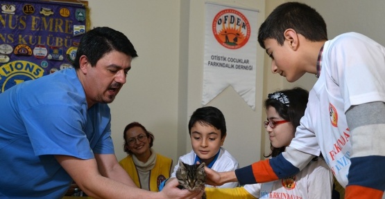 Tepebaşı Belediyesi Doğal Yaşam Merkezi eğitim çalışmalarına devam ediyor.Eğitim çalışmaları bu kez anlamlı bir buluşmaya sahne oldu. Yunusemre Lions Derneği ile gerçekleştirilen etkinlik ile Otizmli Çocuklar Farkındalık Derneği’ndeki 11 çocuk sevimli dostlarıyla tanıştılar. Tepebaşı Belediyesi Veteriner İşleri Müdürlüğünce yürütülen projedeki asıl amaç, çocuklara hayvan sevgisini aşılamak ve sokak hayvanlarına karşı nasıl davranacaklarını öğretmek. Bu kapsamda ekip, Otizmli Çocuklar Farkındalık Derneğini ziyaret ederek, burada eğitim alan çocuklara, Tepebaşı Belediyesi Doğal Yaşam Merkezinden getirilen kedi, köpek ve tavşanı tanıştırdılar.Otizmli Çocuklar Farkındalık Derneği Başkanı Telat Türeli burada yaptığı konuşmada, “Derneğimizin ilk amacı otizmli çocuklar konusunda farkındalık oluşturmak. Otizmli çocuklarımızın bakımının eğitiminin nasıl yapılması gerektiğiyle ilgili ailelerimiz ile görüşüyoruz. Çocuklarımızın yaşama nasıl katılmaları, ne yapmaları gerektiğini ne gibi zorluklar yaşanacağını hangi tedavileri görmesi gerektiğini hangi okula gidebileceğini anlatmaya çalışıyoruz” ifadelerini kullandı.Otizmli bir çocuk annesi olan ve aynı zamanda OFDER yönetim kurlunda görev alan Münire Turgutoğlu ise, “Oğlum 2006 yılında tanı aldı. Otizm o dönemde çok bilinen bir hastalık değildi. Maalesef tanımızı çok geç alabildik. Daha sonra çocuklarımızın eğitim hakkını alabilmek için çok yerden elimiz boş döndük. Yüzmeye götürdüğümüzde otizmli denerek çocuğumuz alınmıyordu. Herhangi bir spor merkezine veya parka götürdüğümüzde çocuklarımızdan kaçılıyordu maalesef. Arkadaşlarımız ile bir araya geldik ve derneğimizi kurduk. Derneğimiz sayesinde otizmin bir hastalık değil farklılık olduğunu anlatmaya çalışıyoruz. Birlikten kuvvet doğuyor ve önyargılar kırılmaya başlıyor” şeklinde konuştu.Bu anlamlı etkinliğin destekleyicilerinden olan Yunus Emre Lions Kulübü Dernek Başkanı Oğuz Ermeral, “Bir dostumuzun vasıtası ile otizme karşılaştık ve bu konuda toplumda algı eksikliğine inandık ve bu yönde çalışmalar yapmaya karar verdik. El ele bu algıyı değiştireceğimize inanıyorum” derken, Lions Yönetim Kurulu Üyesi Handan Ermeral ise, “Otizmin farkındalığın çok ağır ilerlediğini gördük. Destek almakta zorlandığını hissettik dostlarımızın. Söz konusu ailelerin de farkındalık sayesinde destek görmesini istedik. Toplumsal bir kuruluş olarak bir tuğla da biz koyalım istedik. Erken teşhis çocuklarımızın hayata uyum sağlamalarında çok büyük önem arz ediyor. Bu konuda da farkındalık oluşturmaya çalışıyoruz” dedi.