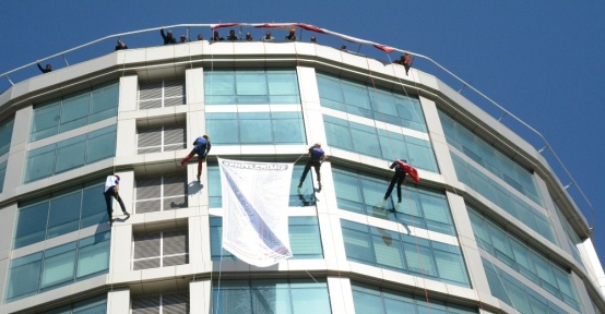 Aksaray’da şehitler anısına bir etkinlik düzenleyen AFAD ekipleri, özel bir alışveriş merkezinin 50 metrelik yükseklikteki çatısından dağcı inişi yaptı.Aksaray’da Acil Afet Durum Müdürlüğü (AFAD) ekipleri, tüm şehitlerin anısına...
