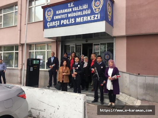 AK Parti Karaman İl Kadın Kolları Başkanı İmiş GÜNENÇ Yönetimi ve İl ilçe Yönetim Kurulu üyeleri ile birlikte Polis Teşkilatı'nın 173. kuruluş yıl dönümü ve Polis Haftası dolayısıyla görevi başındaki polisleri ziyaret ederek günlerini kutladılar.