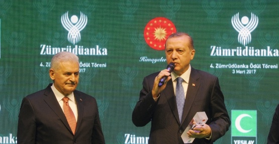 Yeşilay tarafından düzenlenen 4. Zümrüdüanka Ödül Töreni’nde Başbakan Binali Yıldırım, ‘Siyaset’ dalında layık görüldüğü ödülü Cumhurbaşkanı Recep Tayyip Erdoğan’ın elinden aldı.Yeşilay tarafından "Bağımlılıklardan uzak, sağlıklı yaşamı" misyon edinen, söz ve eylemleriyle bu mücadeleye destek veren kişi, kurum ve kuruluşlara verilen “Zümrüdüanka Ödülleri" için Cemal Reşit Rey Konser Salonu’nda tören düzenlendi.Yeşilay Genel Başkanı Prof. Dr. Mücahit Öztürk’ün ev sahipliğinde bu yıl dördüncüsü düzenlenen ödül törenine Cumhurbaşkanı Recep Tayyip Erdoğan, Başbakan Binali Yıldırım, Enerji ve Tabii Kaynaklar Bakanı Berat Albayrak, İstanbul Valisi Vasip Şahin, AK Parti İstanbul İl Başkanı Selim Temurci ve çok sayıda davetli katıldı.Törende Başbakan Binali Yıldırım, uyuşturucu ile mücadele konusundaki çalışmalardan dolayı ‘Siyaset’ dalında ödüle layık görüldü. Başbakan Yıldırım ödülünü Cumhurbaşkanı Recep Tayyip Erdoğan’ın elinden aldı.Ödülü takdim ederken kısa bir açıklama yapan Cumhurbaşkanı Erdoğan, “Sayın Başbakan’dan ricam olacak. O da üç köyümüzü muhtarlar sigara içilmeyen köy noktasına getirdikleri için teşekkür ediyorum. Sayın başbakanım o üç köye el atarlarsa o köyler 300- 400’e doğru tırmanır böylelikle” diye konuştu.Ödülü aldıktan sonra teşekkür konuşması yapan Başbakan Yıldırım ise, “Böyle bir ödüle layık görülmek benim için çok önemli. Hele bu ödülü Sayın Cumhurbaşkanımızın elinden almak ayrı bir anlam ifade ediyor. Sayın Cumhurbaşkanımızı her şeyi takdir eder. Onu belli etmez. Babam da bizi severdi ama sevdiğini belli etmezdi. Bu ödül bize ancak daha fazla azim verir daha fazla hizmet etmek adına teşvik eder. Her ne kadar Avrupa’ya göre 15-24 yaş arasında Avrupa’da uyuşturucu kullanımlarını oran yüzde 29.7 Türkiye de bu oran 2.7. Az olabilir. Ama biz istiyoruz ki hiç olmasın. Çünkü gençlerimiz geleceğimiz. Türkiye 2016 istatistiklerine göre Avrupa’da uyuşturucu yakalama ve bertaraf etme konusunda en önde deliyor. Bir seferinden 13 ton eroini yakalayarak, yüzde 16 dünya toplamında bir mücadeleyi ortaya koymuştur. Terörün en önemli kaynaklarından biri de uyuşturucu ticaretidir. Son aylarda yaptığımız operasyonlarda 4 milyar değerinde hint keneviri imha edildi. Bu konuda da PKK terör örgütüne darbe vuruldu” dedi.Gecede daha sonra toplu fotoğraf çekimi gerçekleştirildi.