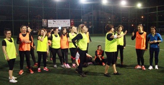 Topuklu kramponlar kanser için halı sahada ter döktü