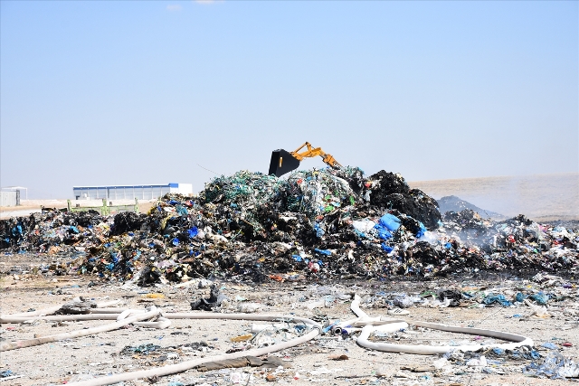 Tesisinin bahçesinde ayrıştırılmayı bekleyen atıkların toplandığı alanda sebebi henüz belirlenemeyen nedenle yangın çıktı.