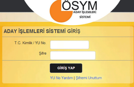Adaylar, TC kimlik numaraları ve şifreleri ile sınav başvurusutercigh işlemleri, bilgi değişikliği ve sınav giriş belgesi çıkarama gibi işlemleri kolayca yapabilirler.. ÖSYM şifresi bütün sınavlar için geçerli olduğunda şifre aday tarafından korunmalı, başkaları ile paylaşılmamalıdır. Kişisel ÖSYM şifresini unutan adaylar ösym'nin ais.osym.gov.tr adresinden ücretsiz olarak alabilirler.. Bu adesten "Şifremi Unuttum" bağlantısına tıklayarak, TC kimlik numaraları ve doğrulama kodunu girdikten sonra istenen bilgileri yazmak sureti ile ÖSYM şifrelerini alabilirler..
