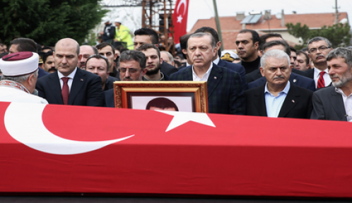 Sakarya - Mardin'in Derik Kaymakamlığına PKK'lı teröristlerce el yapımı patlayıcı ile düzenlenen saldırıda yaralanan ve tedavi gördüğü hastanede şehit olan Kaymakam Muhammet Fatih Safitürk için Arifiye'deki Cumhuriyet Mahallesi Osmanlı Merkez Camisi'nde ikindi vakti düzenlenen cenaze törenine Cumhurbaşkanı Recep Tayyip Erdoğan ile Başbakan Binali Yıldırım da katıldı.Törende Şehit Kaymakam Safitürk'ün eşi Ayşegül, oğlu Asım Eren, babası Asım ve annesi Fatma Safıtürk'ün yanı sıra İçişleri Bakanı Süleyman Soylu, Milli Savunma Bakanı Fikri Işık, Enerji ve Tabii Kaynaklar Bakanı Berat Albayrak, Kültür ve Turizm Bakanı Nabi Avcı, Bilim Sanayi ve Teknoloji Bakanı Faruk Özlü, Cumhurbaşkanlığı Sözcüsü İbrahim Kalın, Jandarma Genel Komutanı Orgeneral Yaşar Güler, Sakarya Valisi Hüseyin Avni Coş, Sakarya Belediye Başkanı Zeki Toçoğlu, yakınları ve vatandaşlar da hazır bulundu.Arifiye'de bütün evler ve dükkanlar Türk bayraklarıyla donatılırken, cenaze namazının kılındığı caminin minaresine de dev bir Türk bayrağı asıldı.Cami ve avlusu ikindi vaktinden 2 saat önce dolarken, bu esnada Kur'an-ı Kerim tilaveti yapıldı ve salavatlar getirildi.Öte yandan Kızılay görevlileri vatandaşlara lokum ve su dağıtırken, bazı vatandaşların ellerinde Türk bayraklarıyla camiye geldikleri görüldü. Safitürk'ün Türk bayrağına sarılı cenazesi görevli polislerce cenaze aracından alınarak musallaya konuldu. Vatandaşlar cenaze töreninden hemen önce "şehitler ölmez vatan bölünmez" şeklinde sloganlar attı.Cenaze namazını Şehit Kaymakam Safitürk'ün babası Asım Safitürk kıldırdı. Cenaze namazından önce cemaate seslenen Safitürk, herkesin bir gün Allah'a döneceğini söyledi.Safitürk, "Bütün İslam aleminin kendisiyle iftihar ettiği, cümle ümmetin medarı iftiharı olan çok değerli kardeşim Muhterem Cumhurbaşkanımızın -Allah kendisinden razı olsun-, onun destekçileri başbakanlar, bakanlar, milletvekillerimiz ve bunları destekleyen ve sevenleri de Allah muvaffak eylesin" ifadelerini kullandı.Oğlunun 7. ve sonuncu çocuğu olduğunu, öğrencilik hayatında kendisine hiçbir zorluk çıkarmadığını ve tüm kardeşleri tarafından sevildiğini anlatan Safitürk, "Böyle bir evladı kaybetmek kolay değil" diye konuştu.Cumhurbaşkanı Erdoğan'ın sık sık "Bayrağı bayrak yapan üstündeki kandır/Toprak uğrunda ölen varsa vatandır" dizelerini seslendirdiğini hatırlatan Safitürk, "Hazreti Hamza gibi feci şekilde şehit olması birinci tesellim, ikincisi de çok Muhterem Başkanımızın bu ifadesi. Bu vatanın ekmeğini yiyen, bu milletin vergisiyle ta Meclis'e kadar gelen, elektrik su parası ödemeyen, askerlik yapmayan, bu millete ihanet eden, -Yüce Rabbül Aleminden diliyorum, inşallah bu şehit son şehidimiz olur- hunharca yavrumu şehit edenleri de Allah'a havale ediyorum" ifadelerini kullandı.Cenaze namazı sonrasında, Erdoğan ve Yıldırım şehit Kaymakam Safitürk'ün tabutuna omuz verdi.Teşrik tekbirleri eşliğinde cenaze aracına konulan Safitürk'ün cenazesi Cumhuriyet Mahallesi'ndeki mezarlığa defnedildi.