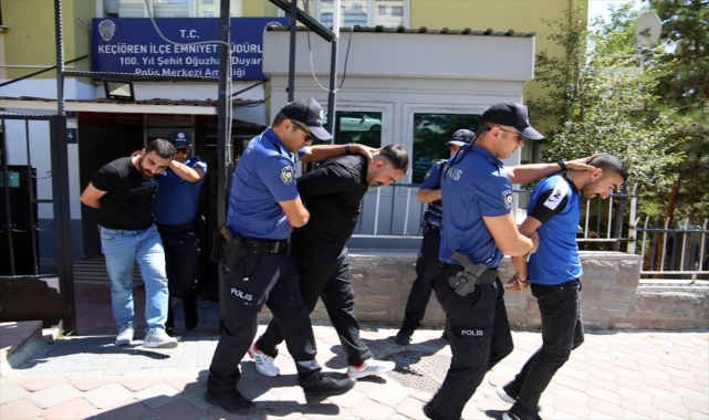 Ankara'nın Keçiören ilçesinde kaza yapan aracın sürücüsünü silahla tehdit ederek para isteyen 3 şüpheliden 2'si tutuklandı.Emniyetten yapılan açıklamaya göre, ilçede aracıyla seyir halindeki M.E. önünde duran hafif ticari araca çarptı.Çarptığı araçtakilerden O.C.A. M.E'den kaza sebebiyle önce 5 bin, sonra 2 bin 500 lira istedi. M.E'nin olumsuz yanıt vermesi ve polis çağırmak istemesi üzerine O.C.A, M.E'nin aracına zarar verdi.Araçtakilerden B.İ. yanındaki silahla M.E'yi tehdit etti. Aracın farını ve sağ arka camını kıran şüpheliler, para alamayacaklarını anlayınca olay yerinden kaçtı.M.E, çevredekilerin cep telefonuyla çektiği görüntülerle Keçiören İlçe Emniyet Müdürlüğüne başvurdu.Görüntüleri inceleyen ve şüphelilerin kimliklerini belirleyen ekipler, hakkında 7 yıl 3 ay 15 gün kesinleşmiş cezası bulunan O.C.A. ile B.İ. ve A.İ.İ'yi yakaladı.Gözaltına alınan şüpheliler adliyeye çıkarıldı.Hakimliğe sevk edilen şüphelilerden O.C.A. ve B.İ. tutuklandı, A.İ.İ adli kontrol şartıyla serbest bırakıldı.