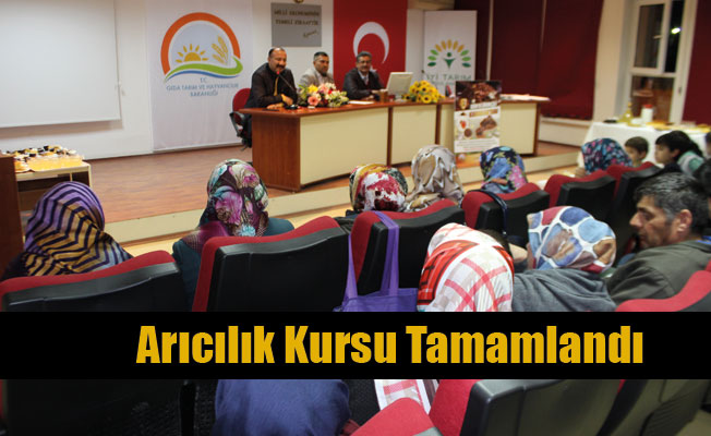 Arı Yetiştiriciliği Kursunda; personelimiz Tekniker Hasip TURAN tarafından kursiyerlere: bal arısı ırkları, koloni bireyleri ve düzeni, mevsimsel bakım ve kışlatma işlemleri, bal üretimi, diğer arı ürünlerinin üretimi, ana arı yetiştiriciliği, ballı bitkiler, gezginci arıcılık, arı sağlığı ve arıcılıkta kullanılan teknolojik alet ve ekipmanlar konularında bilgiler verdi. Kurs sonunda başarılı olan kursiyerlere uluslararası nitelikte olansertifikaları verilecektir.Bu kursumuz ileilimiz arıcılarının beceri ve bilgilerini artırmalarına katkıda bulunulmuştur.