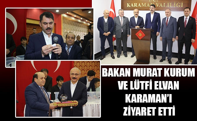 Çevre ve Şehircilik Bakanı Murat Kurum ile AK Parti Genel Başkan Yardımcısı Lütfi Elvan, ziyaret ve temaslarda bulunmak üzere bugün (26 Ocak 2019 Cumartesi) Karaman’a geldi.