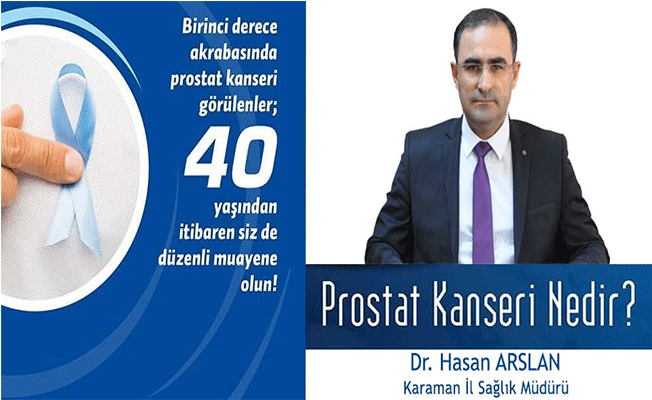 Prostat, erkek üreme sisteminin parçası olan bir salgı bezidir. Mesanenin (idrar kesesi) altında yer alır.Prostatı oluşturan hücrelerin kontrolsüz çoğalması sonucu prostat kanseri gelişebilir. Ülkemizde ve dünyada, erkeklerde akciğer kanserinden sonra ikinci sıklıkla en sık görülen kanser prostat kanseridir. İl Sağlık Müdürümüz Dr. Hasan ARSLAN Dünya Prostat Kanseri hakkında bilgilendirme amaçlı;“40 yaş üstü erkek hastalarımız prostat ile ilgili şikayeti olmasa bile aile hekimliklerinde yapılan ücretsiz check-up uygulamalarından da faydalanarak prostat kanseri şüphesi olup olmadığını öğrenebilir, erken teşhis imkanından faydalanabilirler” ifadelerini kullandı. Prostat kanserinin kesin nedenleri bilinmemekle birlikte: • Yaş ilerledikçe risk artmaktadır.• Birinci derece akrabasında (baba, erkek kardeş, abi) prostat kanseri görülenlerin bu kansere yakalanma riski diğer insanlara göre iki kat daha yüksektir.• Doymuş yağlardan (hayvansal gıdalarda bulunan yağlar, tereyağı, margarin, iç yağı, kuyruk yağı) ve kırmızı etten zengin, sebze-meyveden fakir beslenme alışkanlığı prostat kanseri riskini arttırabilmektedir. Prostat kanseri erken evrede hiçbir belirti vermez. Kanser dokusu büyüdükçe aşağıdaki bazı şikâyetlere yol açabilir:• Sık idrara çıkma• Gece idrara kalkma• Kesik kesik idrar yapma• Zor idrar yapma• Ağrılı idrar yapma• Kanlı idrar• Kanlı meni Bu şikâyetlerin olması prostat kanseri olduğunu göstermez ama bir ipucu olabilir. Bu yakınmalardan en az biri olduğunda, üroloji (bevliye) uzmanına başvurulmalıdır. Prostat kanseri erken tanı konulabilen ve tedavi edilebilen bir hastalıktır. Erkeklerin 50 yaşından itibaren, birinci derece akrabasında prostat kanseri görülenlerin de 40 yaşından itibaren üroloji uzmanına düzenli muayene olması erken tanı konulması açısından önemlidir. Hastalığın evresine ve özelliklerine göre farklı tedavi seçenekleri mevcuttur. Kişinin belirli aralıklarla izlenmesi, prostatın tamamının ameliyatla çıkarılması veya ışın tedavisi (radyoterapi) erken evrelerde uygulanabilir. Hormon tedavisi veya ilaç tedavisi (kemoterapi) diğer evrelerde gerekli görülebilir. Erken tanı ve tedavi hayat kurtarıcıdır.Tüm kanserlerde olduğu gibi; sağlıklı (sebze ve meyveden zengin) beslenme alışkanlıkları, fiziksel aktivite yapma (yürüme, koşma, bisiklete binme, yüzme gibi), sağlıklı kiloda olma ve bu kiloda kalma prostat kanseri riskini azaltabilir. Aile hekimine danışılarak sağlıklı kiloda olunup olunmadığı öğrenilebilir. Özellikle birinci derece akrabalarında prostat kanseri görülenler yüksek risk altında olduğundan 40 yaşınızdan itibaren düzenli olarak üroloji hekiminize giderek muayene olmalıdırlar. “Prostat Kanserinden ‘utanma’ zaman çalıyor”