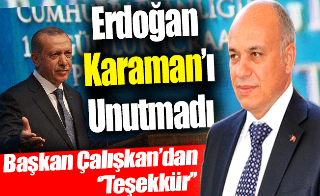 Karaman Belediye Başkanı Ertuğrul Çalışkan Cumhurbaşkanlığı 100 günlük İcraat programı sonucuna teşekkür mesajı yayınladı.