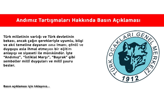 Türk Ocakları Andımız ile ilgili yazılı açıklamada bulundu. İşte o açıklama;