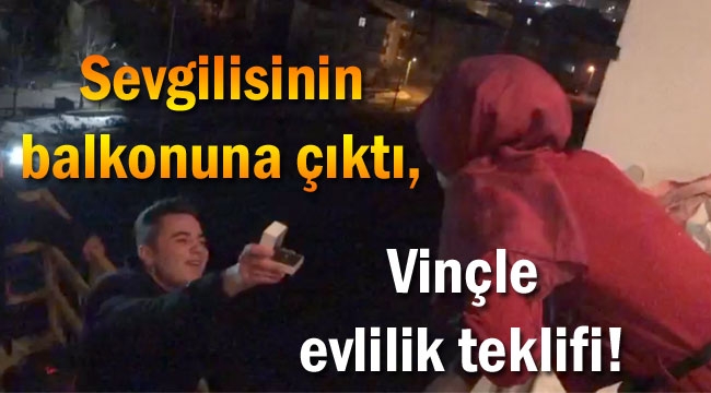 Vinçle evlilik teklifi! Sevgilisinin balkonuna çıktı.