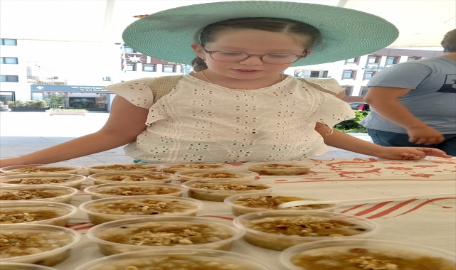 Ünal, "Bize atalarımızdan yadigar kalan bu aşure dağıtımını bugün ilçe merkezinde yaptık. Vatandaşlara aşuremizi dağıttık." dedi.