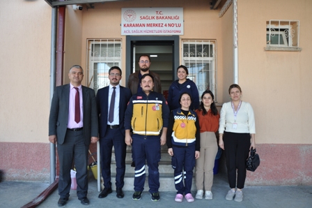 Karaman İl Sağlık Müdürü Uzm. Dr. Mehmet Serkan Yurdakul, Acil Sağlık Hizmetleri Haftası sebebiyle sahada çalışan Acil Sağlık Hizmetleri çalışanlarını ziyaret etti.