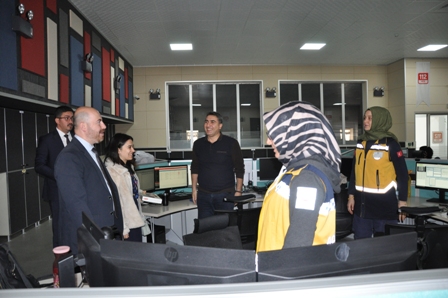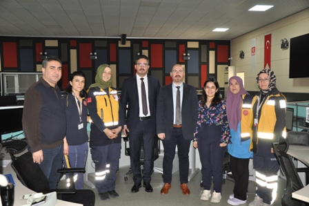 Komuta Kontrol Merkezi’nde telsiz başına geçerek verdiği anonsla Acil Sağlık Hizmetleri’nde görevli personelin haftasını kutlayan İl Müdürü Yurdakul, daha sonra İl Ambulans Servisi Başhekimliğini ziyaret etti.
