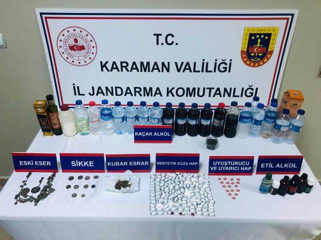 Karaman İl Jandarma Komutanlığı, vatandaşların güvenliğini sağlamak ve suçları önlemek amacıyla 21 - 28 Aralık 2023 tarihleri arasında geniş kapsamlı bir operasyon düzenledi. İşte yapılan çalışmalardan elde edilen önemli veriler:(14.419) Şahıs Sorgulandı: Jandarma ekipleri tarafından yapılan operasyonlarda toplam (14.419) şahıs sorgulandı, suç unsurları üzerinde detaylı incelemeler gerçekleştirildi.(8.126) Araç Sorgulandı: (8.126) araç detaylı bir şekilde incelenerek, suç işleme potansiyeli taşıyan unsurlar tespit edilmeye çalışıldı.(41) Aranan Şahıs Yakalandı: Kasten öldürme, kasten yaralama, konutta birden fazla kişi ile yağma, dolandırıcılık gibi çeşitli suçlardan aranan (41) şahıs başarılı operasyonlar sonucunda yakalandı.(14) Şahıs Tutuklandı: Yakalanan şüphelilerden (14) kişi tutuklandı ve adli süreç başlatıldı.(125) Şahsa Adli/İdari İşlem Yapıldı: Operasyonlar kapsamında (125) şahsa adli ve idari işlemler uygulandı.Trafik Denetimleri: (10) araç sürücüsüne ehliyetsiz/yetersiz ehliyetle araç kullanmaktan işlem yapıldı, (25) araç trafikten men edildi, (5) alkollü araç kullanan sürücünün sürücü belgesi geçici süreyle geri alındı.Uyuşturucu Operasyonları: Yapılan aramalarda (20) gram kokain, (2) gram eroine, (43) gram metamfetamin, (29) gram kubar esrar ele geçirildi. Ayrıca (186) adet sentetik hap ve (63) gram barut da bulundu.Kaçakçılık ve Diğer Suçlar: Operasyonlar kapsamında (278) adet tarihi eser olduğu değerlendirilen obje, (1) adet ruhsatsız av tüfeği, (1) adet kurusıkı tabanca, (500) gram civa ve kaçak içki ile içki yapımında kullanılan kimyasal madde ele geçirildi.Karaman İl Jandarma Komutanlığı, huzur ve güven ortamının devamını sağlamak amacıyla denetim ve uygulamalara kararlı bir şekilde devam edeceğini belirtti.