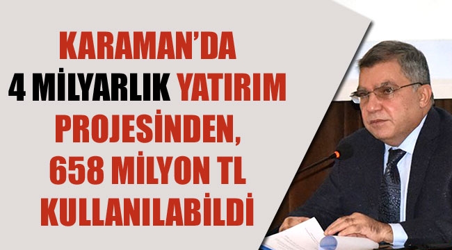KARAMAN’DA 4 MİLYARLIK YATIRIM PROJESİNDEN, 658 MİLYON TL KULLANILABİLDİ
