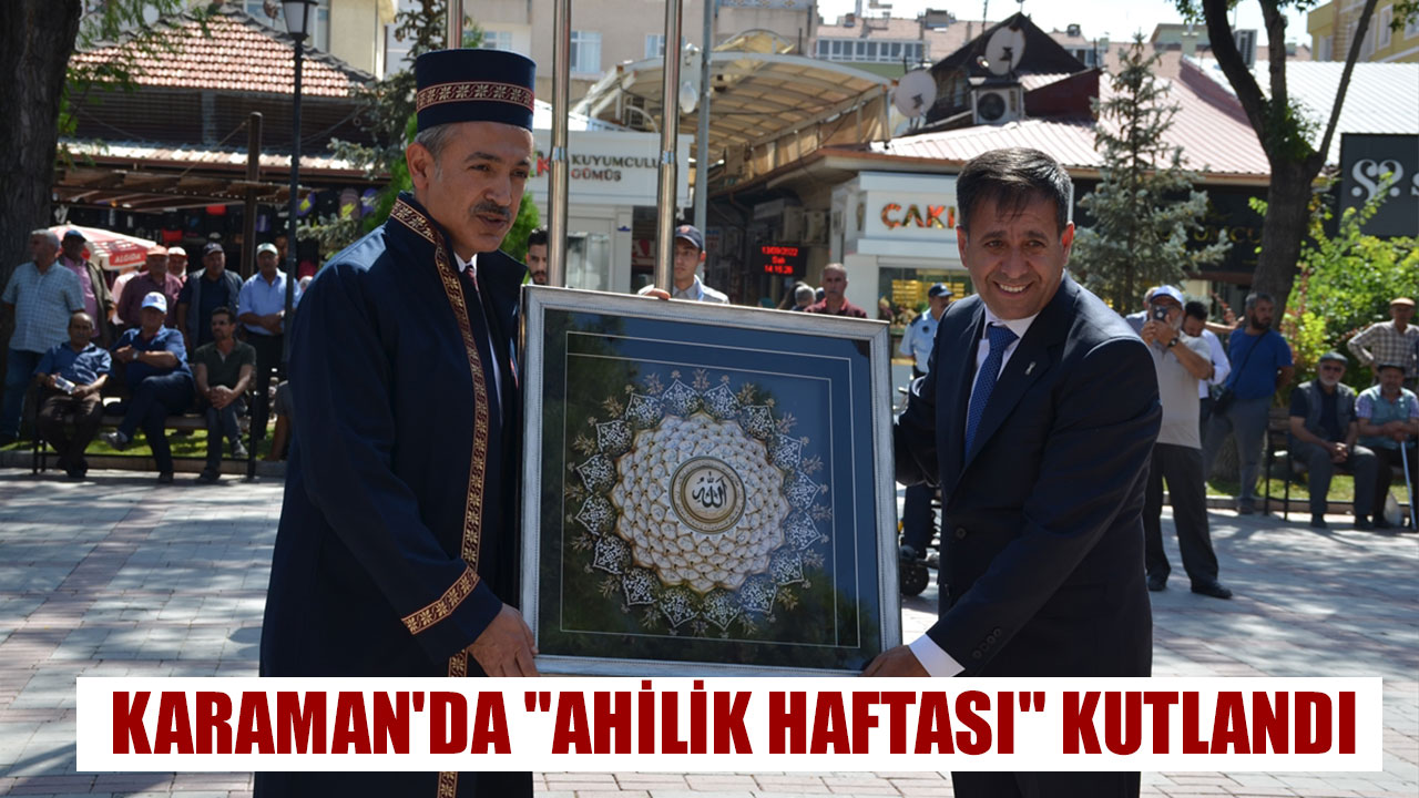Karaman'da, "35. Ahilik Haftası" kapsamında tören düzenlendi. Cumhuriyet Parkında düzenlenen törende, Karaman Esnaf ve Sanatkarlar Odaları Birliği Başkanı Selahattin Pekoğlu ve Ticaret İl Müdürü Adem Özcan, Atatürk Anıtına çelenk sundu.Saygı duruşunda bulunulması ve İstiklal Marşı okunmasının ardından Karaman Valisi Tuncay Akkoyun'a "Ahi Dostu" kaftanı, ilin ahisi olarak seçilen Halil Uyar ile diğer meslek gruplarının temsilcilerine "Ahilik" kaftanları giydirildi.Daha sonra parktan Aktekke 15 Temmuz Demokrasi Meydanına kadar Ahi yürüyüşü düzenlendi.Buradaki törende İlin Ahisi Uyar'a ve diğer meslek gruplarındaki temsilcilere plaket ve ödülleri takdim edildi.Törenlere Vali Akkoyun'un yanı sıra Belediye Başkanı Savaş Kalaycı, siyasi parti il başkanları, sivil toplum kuruluşlarının temsilcileri ile vatandaşlar katıldı.