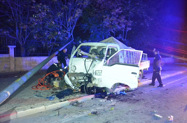 Ali A, idaresindeki 70 ER 534 plakalı kamyonet, Üniversite Mahallesi İbrahim Öktem Caddesi'nde aydınlatma direğine çarptı.