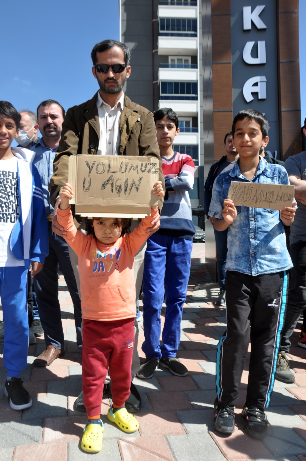 4 yıldır belediyenin resmi yolu açmamasına tepki gösteren mahalle sakinleri seslerini duyurmak için bugün site önünde bir araya gelerek belediyeye tepki gösterip yetkilileri göreve çağırdı.