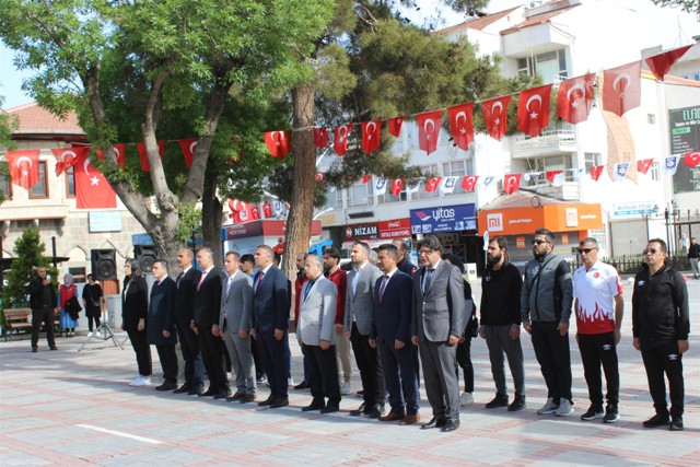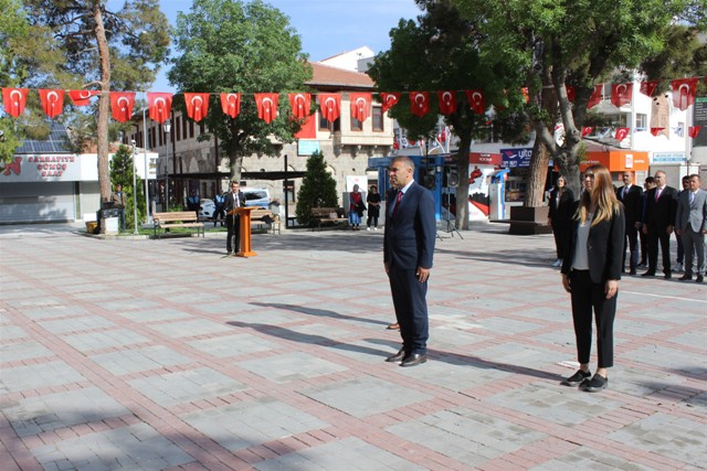 Cumhuriyet Parkı’nda Atatürk Anıtına çelenk sunulması ile başlayan tören, saygı duruşu ve istiklal marşının okunmasıyla tamamlandı.